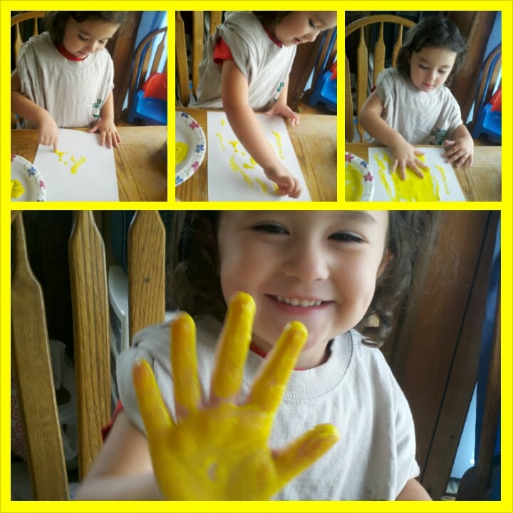 She also finger painted with yellow paint. She loves feeling the paint all over her hand.